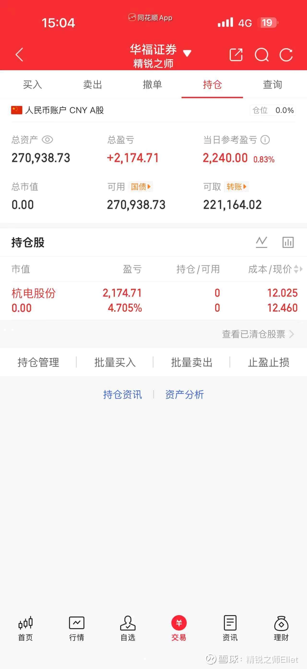 小赚,现在玩高标是真的卷,情绪好了就赚点小肉,情绪差了就要吃大面,或许真的要考虑一下从一进二或者二进三开始做起,但是低位的胜率和盈亏比又不够,但是当下市场高度压制的厉害,感觉还是要等一波新的行情才会有机会,短期如果一直这么卷,空仓过节才是正确的选择,昨天顶的$杭电股份(SH603618)$ 今天好在还有两次冲板的机会,午后二次回落时候确定无希望晋级就落袋了,总比$名雕股份(SZ002830)$ 要强的多,开盘一瞬间跑不掉就天地被埋,本来还以为杭电pk赢了下午还有机会,哎,先空了休息一下,符合模式的机会真的太少了,真不好玩啊。