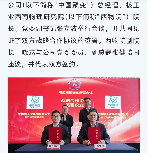 同方股份给大股东中核集团提供核聚变大模型和控制软件,是中核集团唯一信息化支撑单位,承担着中核集团核电数字化、信息化、智能化的重任。