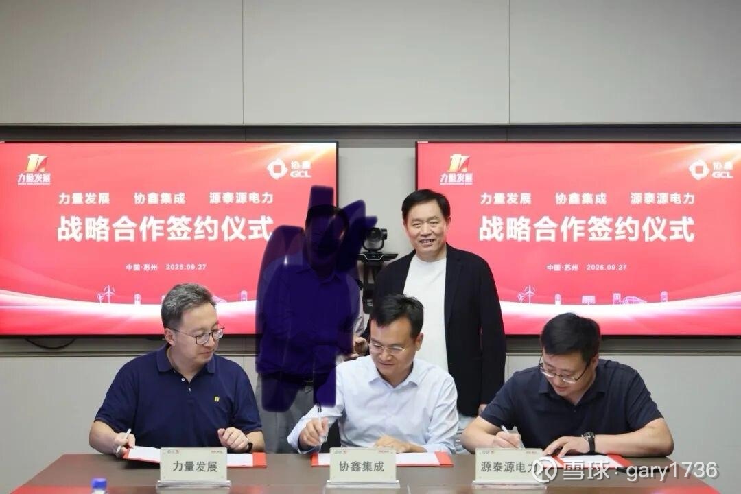这是力量发展、协鑫集成、源泰源电力三方在南非光伏项目上的战略合作签约。