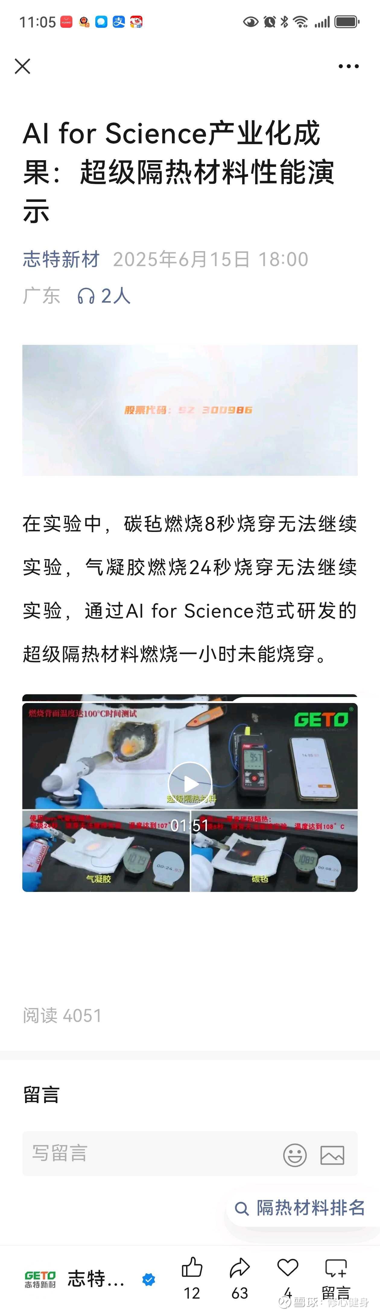 11月15日在合肥举办的2025年AI for Science生态大会上,超级隔热防火材料,作为重磅成果之一发布。