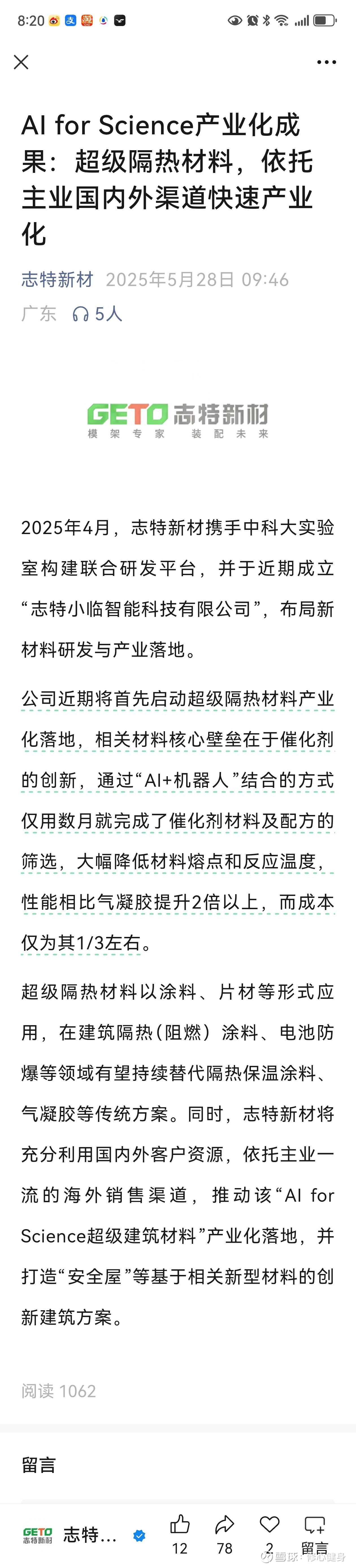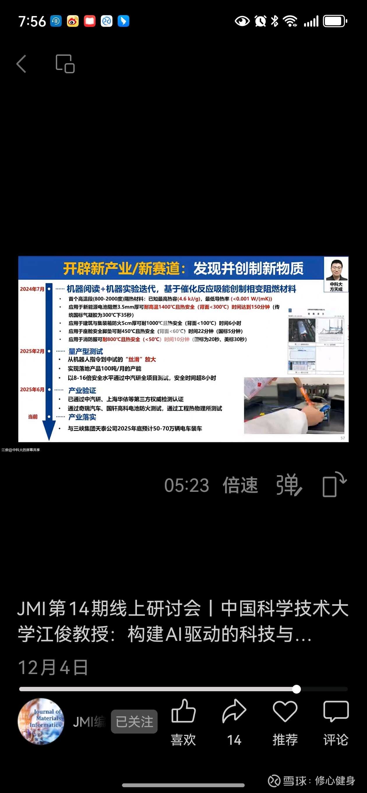 下面这张图是球友发贴的,我去看了原视频,由中国科学技术大学精准智能化学全国重点实验室(志特新材的长期战略合作方)副主任江俊12月4日线上交流会发布的。