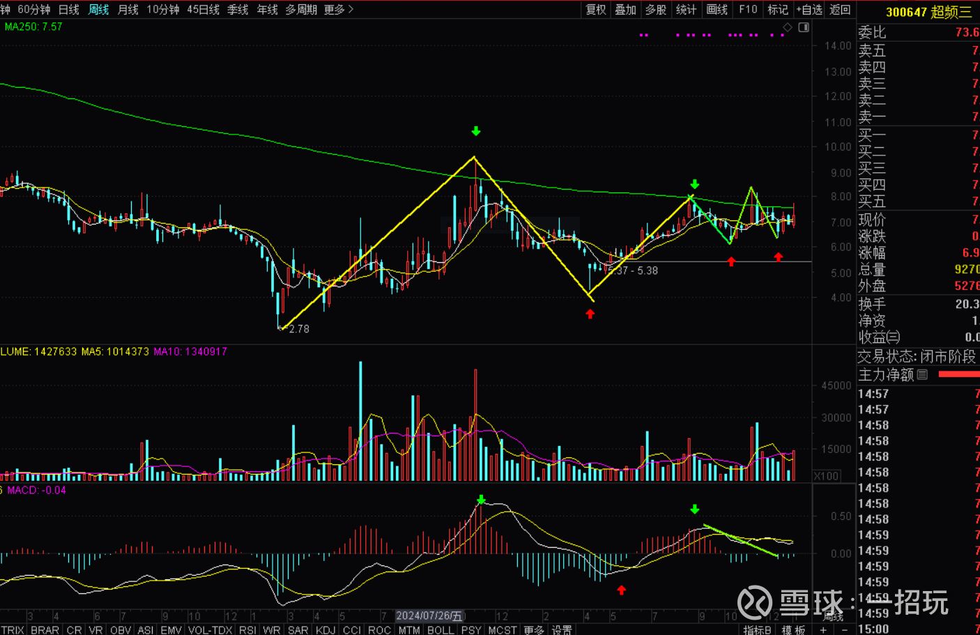 这票最大的问题是没有成交量。周线上,这是第四次去突破250周线。这是从2024年的低点开始最大的压力位。这么的的压力,是需要成交量配合的。所以,关注成交量。