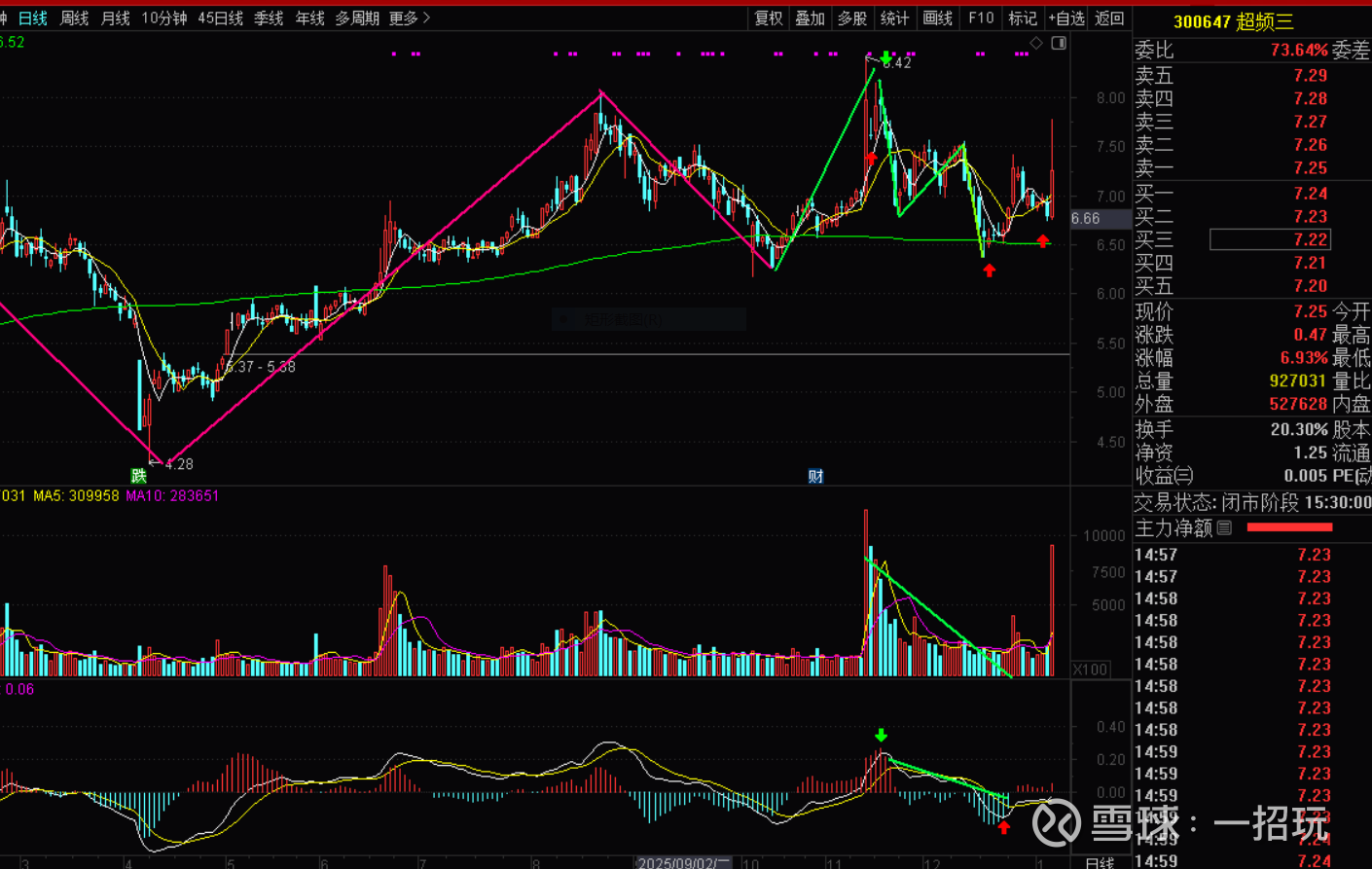 上一个高点是8.42,成交量发出,今天成交量终于又放出来。好久了。成交量不活跃的票真的头发麻。