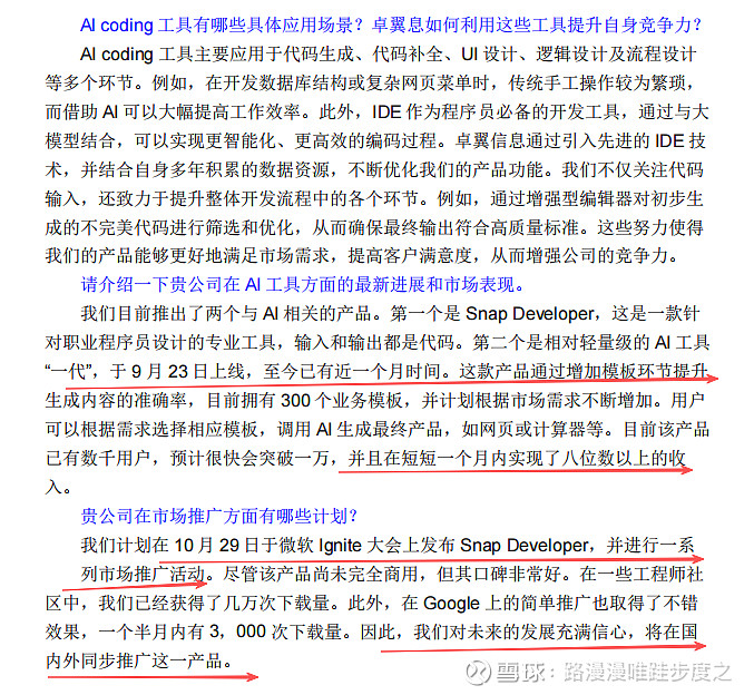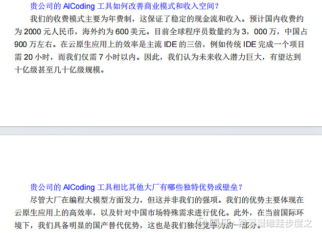 我们的收费模式主要为年费制,这保证了稳定的现金流和收入。预计国内收费约为 2000 元人民币,海外约为600美元。目前全球程序员数量约为3,000万,中国占900万左右。在云原生应用上的效率是主流IDE的三倍,例如传统IDE 完成一个项目需 20小时,而我们仅需7小时以内。因此,我们认为未来收入潜力巨大,有望达到十亿级甚至几十亿级规模。.