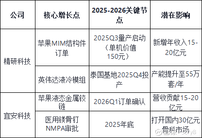 3、医疗与机器人新兴领域:可降解镁骨钉瞄准骨科植入物500亿美元市场;人形机器人关节组件送样特斯拉,液态金属齿轮箱减重40%。