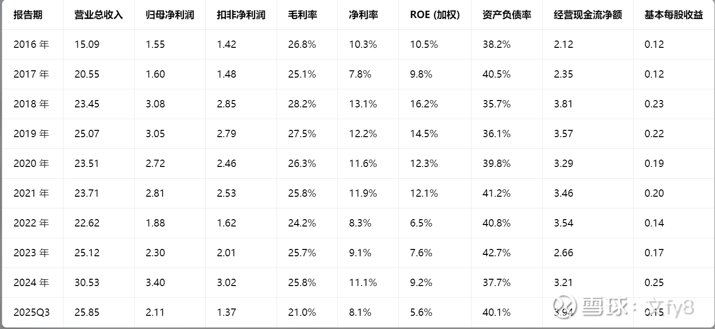 一个公司是不是好的公司,特别是他作为一个无国资背景典型的民营高科技制造公司,是不是能够一个长期发展的稳健的公司,我觉得从他的财务报表就能清晰体现,稳健的公司通常都具备长期营收向好,利润偶有波动但是比较难亏损的财务管控能力,以下是该公司近十年的财务指标分析