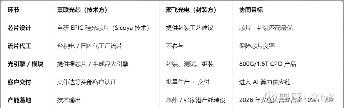 利益一致:熹联需要聚飞的封装产能与成本控制;聚飞需要熹联的硅光 IP 与客户认证,短期无替代方案。