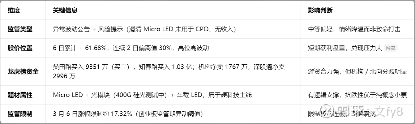 估值重构:从传统 LED 封装(低估值)转向光通信 / CPO(高估值),2026 年初因 CPO 概念股价大幅上涨,市值突破170 亿元。