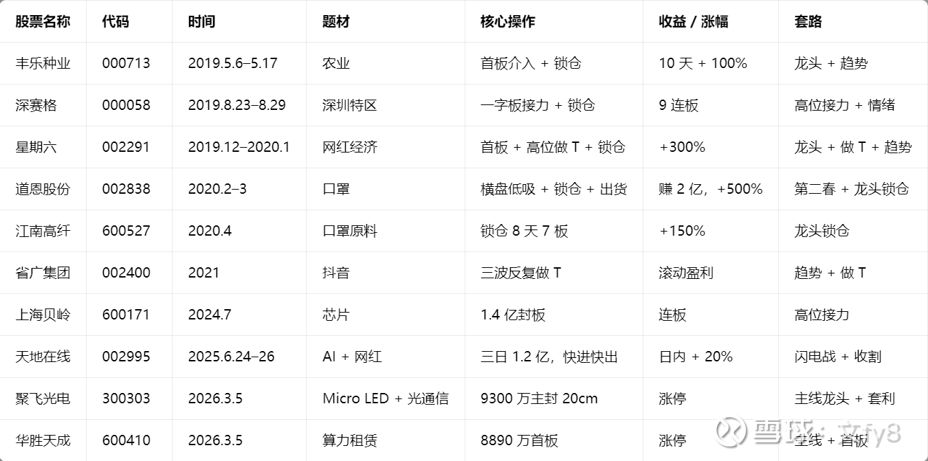真的是很有意思啊,查看他们过去的历史,特别是以前的辉煌历史,不得不感叹大神,请容我膜拜。但是目前的监管环境又有变化,19年他们的手法更加夸张,其中我查看的道恩股份,短短几天翻了五倍,真的是神来之笔,只能感叹当年真的是撑死胆大的,饿死胆小的