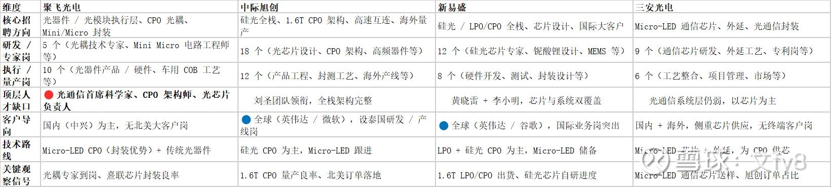岗位分布: LED 显示 / 背光 / 车载:约50%(Mini/Micro LED、COB 封装、车用工艺 / 设备)。 光通信 / 光器件:约30%(光模块、光器件、CPO、光耦)。 生产 / 质量 / 职能:约20%。