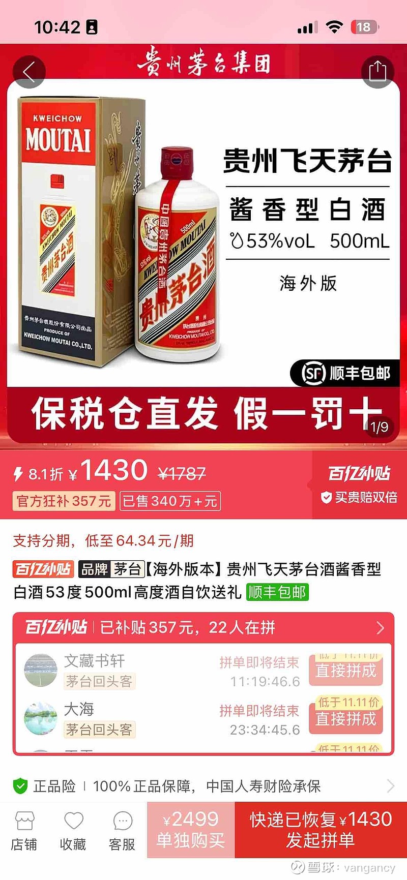 $贵州茅台(SH600519)$ 贵州茅台在电商平台1430元已经随便买。实际已经跌破了 1499 元的官方指导价。这意味着茅台在二级市场已经失去了“溢价能力”。拼多多上的货源大多来自中小经销商、电商黄牛或急于套现的大户。1430元说明这些持货方的资金链或心理防线已断。他们宁愿亏损(扣除进货和运营成本),也要在淡季前出货套现。