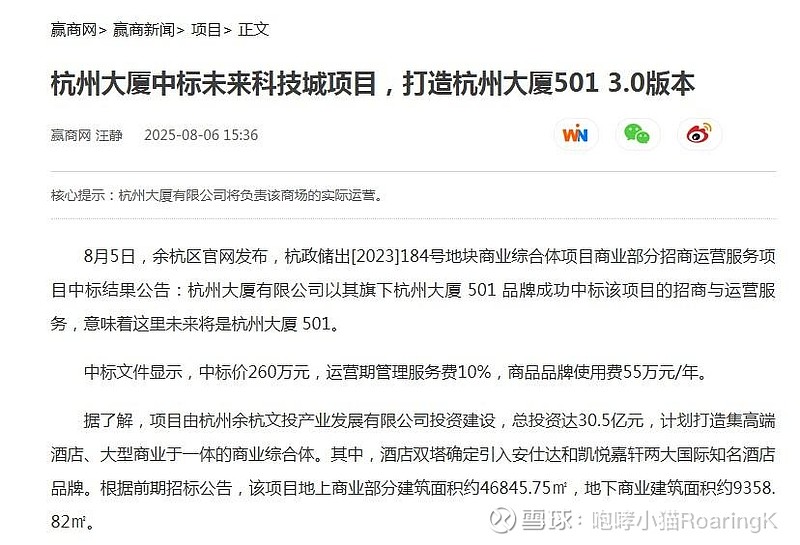 根据最新报道“杭州大厦 501” 中标余杭商业综合体