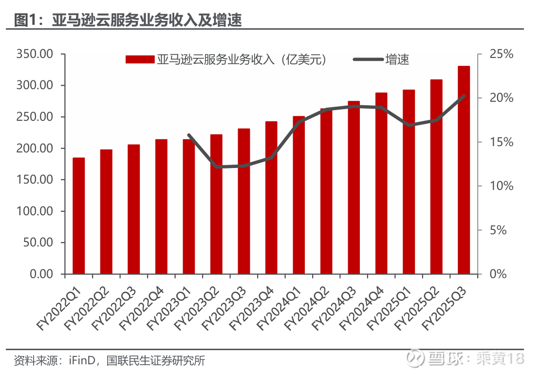 以亚马逊云服务为例,2025财年第三季度财报显示,得益于AI基础设施的 强劲需求以及客户持续加速上云进程,亚马逊云科技第三季度净销售额达到330亿美元,同比增长20%,创下自2022年以来最高增速。同时,亚马逊云科技季度营业利润由2024财年第三季度的104.47亿美元增长至114.34亿美元。