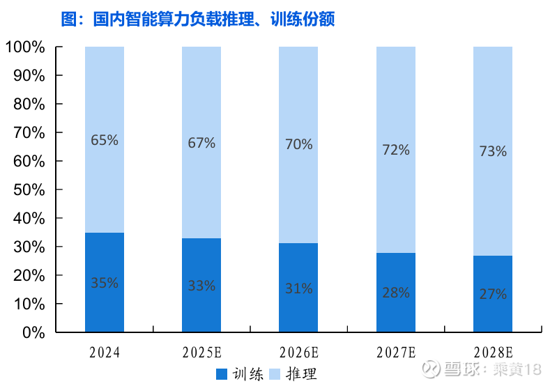 2025年9月腾讯全球数字生态大会上,腾讯明确指出大模型产业重心从训练到推理的转变已成为行业共识。同时,甲骨文在其 财报电话会上也强调AI推理市场的规模将“远大于”训练市场。据智东西,到2027年,中国智能算力负载中的推理负载占比将高达72%,远超训练负载。