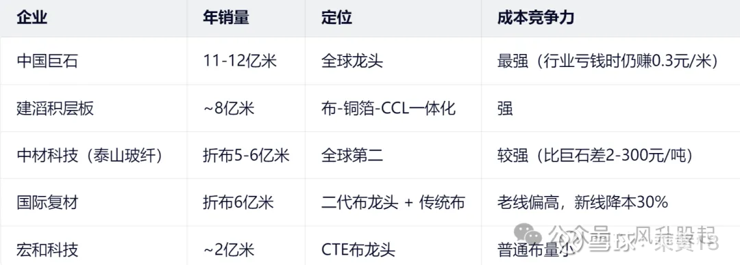 关键特征: 特种电子布的竞争格局远好于普通布。全球能做的厂商极少,国内仅3-4家,且各家主打产品不同,形成差异化竞争而非价格战。