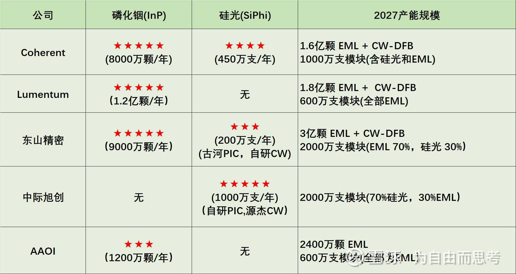- 光芯片:2027年目标3亿颗产能