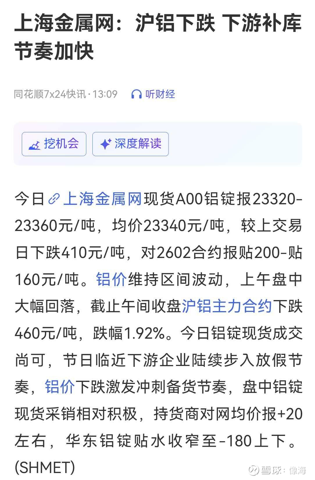 1、本次期铝价格回调,会刺激下游加快补库,进而对下跌空间形成强劲的支撑,目前这个现象已经正在发生。