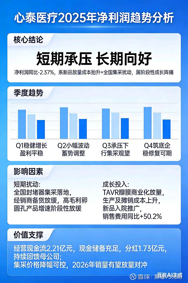 心泰医疗2025年净利润同比下降2.37%,核心原因是下半年集采扰动+新品放量导致成本与费用上升。