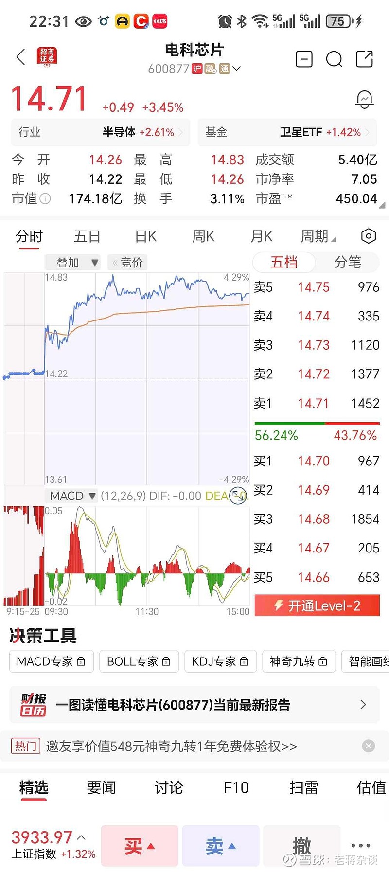 2025年10月9日,电科芯片(600877)表现强势,收盘报14.71元,上涨3.45%,成交额5.40亿元,换手率3.11%。该股当日走势与半导体板块整体活跃态势一致,主力资金净流入2139.91万元,扭转了前期持续流出的态势。其所属的半导体板块在当日科技股行情中受到多重催化,包括存储涨价、设备国产化及封测需求提升等。