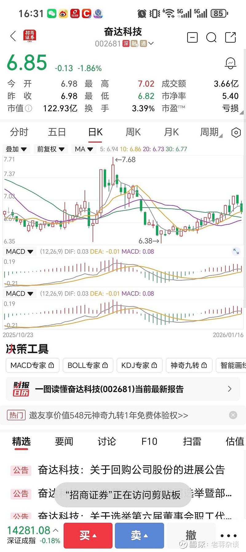 奋达科技后续走势