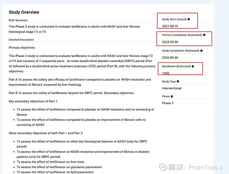 根据IVA在clinicaltrials.gov临床注册方案,计划2021.8.19开始,实验预期2025.9.30完成,10.8的交流会公布部分MASH三期数据(至少会是实质性进展),可能是短期第三家申请上市的mash药厂(26年角度)。