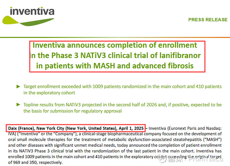仔细跟踪IVA关于NATiV3的入组时间看,21年8月开始招募患者(计划1000人左右),但直到24年7月入组人数完成超过80%,最终完成100%入组完成25年4月1日。这里可看出mash药开发因为活检要求,志愿者招募非常艰难(IVA用了3年半时间完成最后入组)