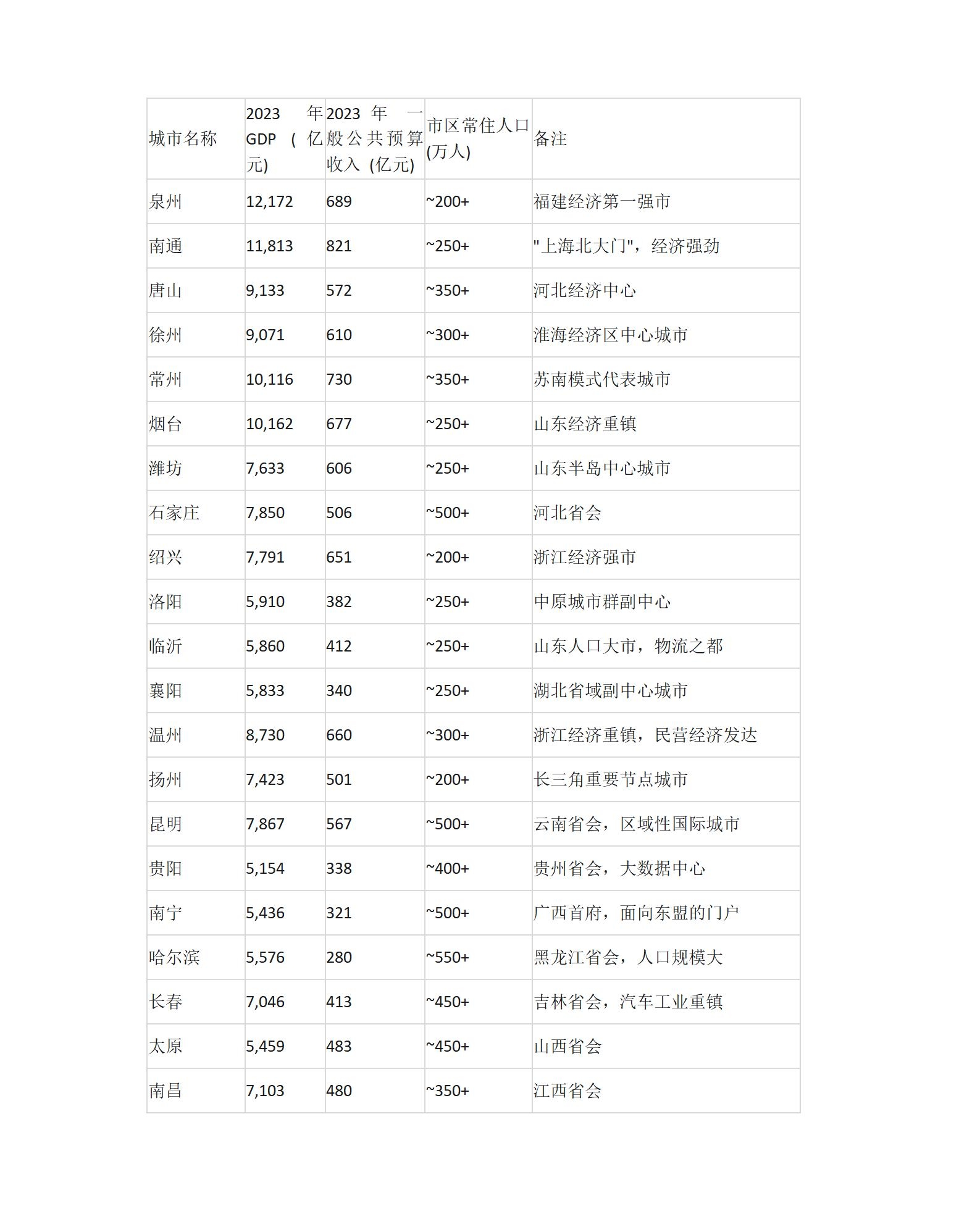 “市区常住人口”是关键且最难精确的指标。官方常公布的是全市总人口,而政策要求的是“市区”或“城区”人口。因此,本表中的人口数据综合了2023年的统计公报估算值和第七次人口普查(2020年)的城区人口数据,力求最接近政策口径,并在备注中加以说明。