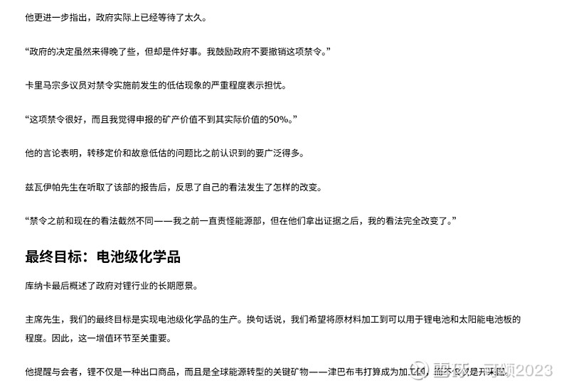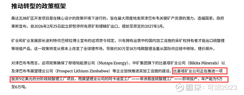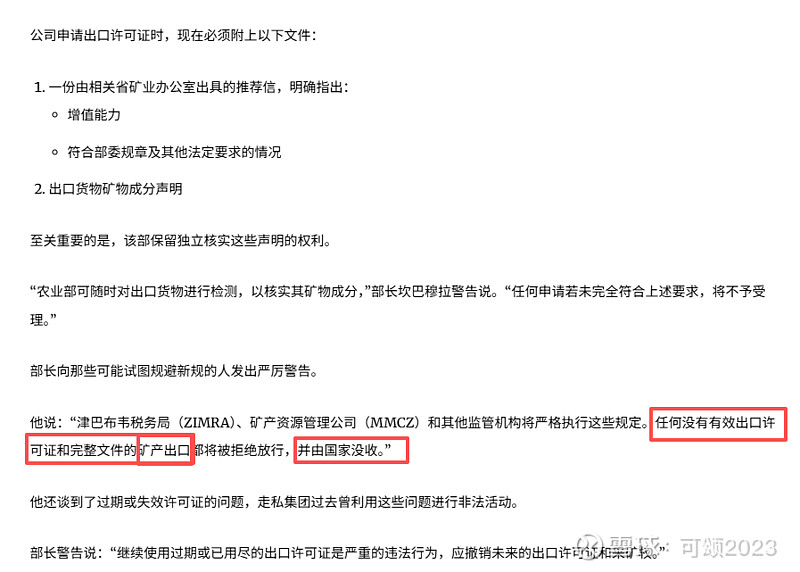 1. 2026年2月25日:矿业部长宣布禁止出口所有原矿和精锂矿,首先要说明的是针对的不仅仅是只有锂矿,还包括其他的矿种,文中部长还用铬举了例子;文中确实提到了没收,但是说的是不合规的出口的货物,并不是矿山;对于使用过期和失效的许可证的会没收许可证和取消采矿权