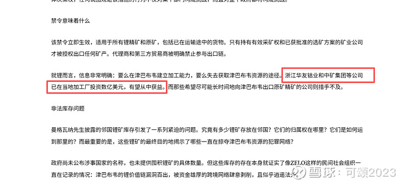 5. 2026年3月3日:大概还是说存在的大量的矿物在2027年禁令之前被疯狂出口,同时存在矿物价值被低估、瞒报、窃取之类的,同时对于中矿、华友的报道也是正面的