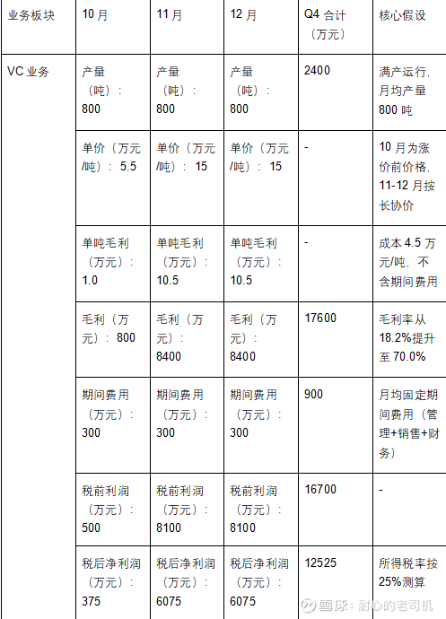 第四季度为公司业绩核心增量期,其中VC业务盈利爆发为主要拉动因素,家纺业务受益传统旺季实现稳定贡献,具体测算如下表: