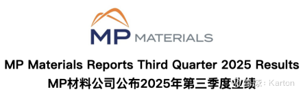 2025 年 11 月 6 日,MP Materials 公司(纽约证券交易所代码:MP) $MP Materials(MP)$ 公布截至 2025 年 9 月 30 日的三个月财务及运营业绩,公司为美国唯一全产业链稀土生产商,业务覆盖采矿、加工至磁体制造。网页链接{MP Materials Reports Third Quarter 2025 Results}