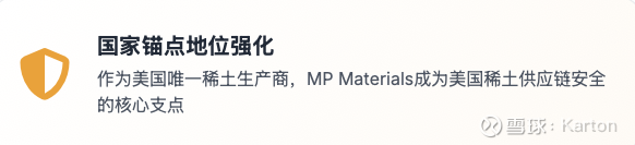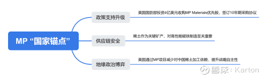 地缘政治博弈的关键支点:美国力图摆脱对中国稀土加工的依赖(目前中国控制全球 90% 永磁产能),MP 项目成为核心抓手。公司被视为美国重建稀土供应链的关键支点,享有显著的战略溢价。