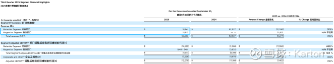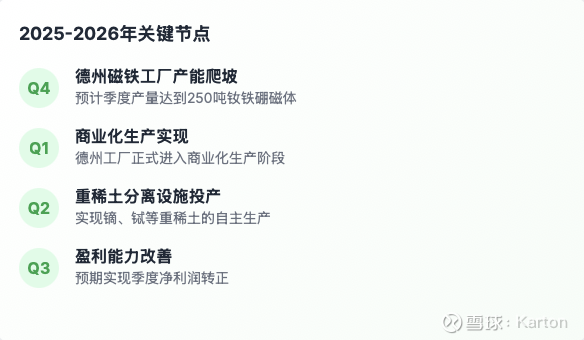 管理层预计 “2025 年 Q4 恢复盈利”,关键假设是 Magnetics 板块收入放量 + Materials 板块分离设施满负荷(降低单位成本)。