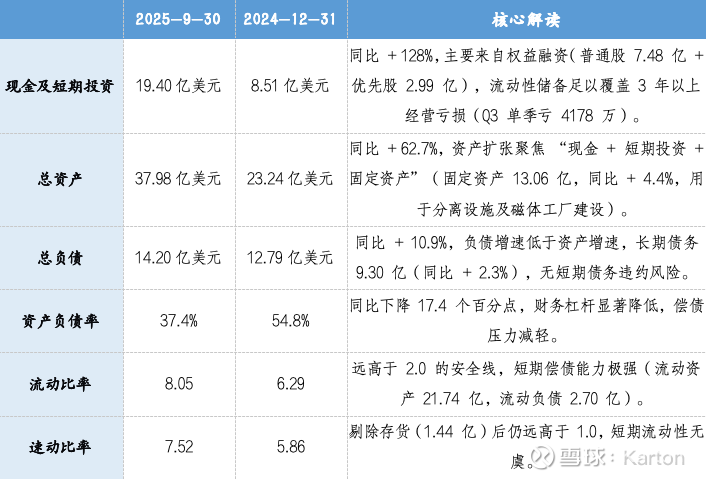资产负债表呈现 “现金储备激增 + 负债结构优化” 特征,短期与长期均处于安全区间。