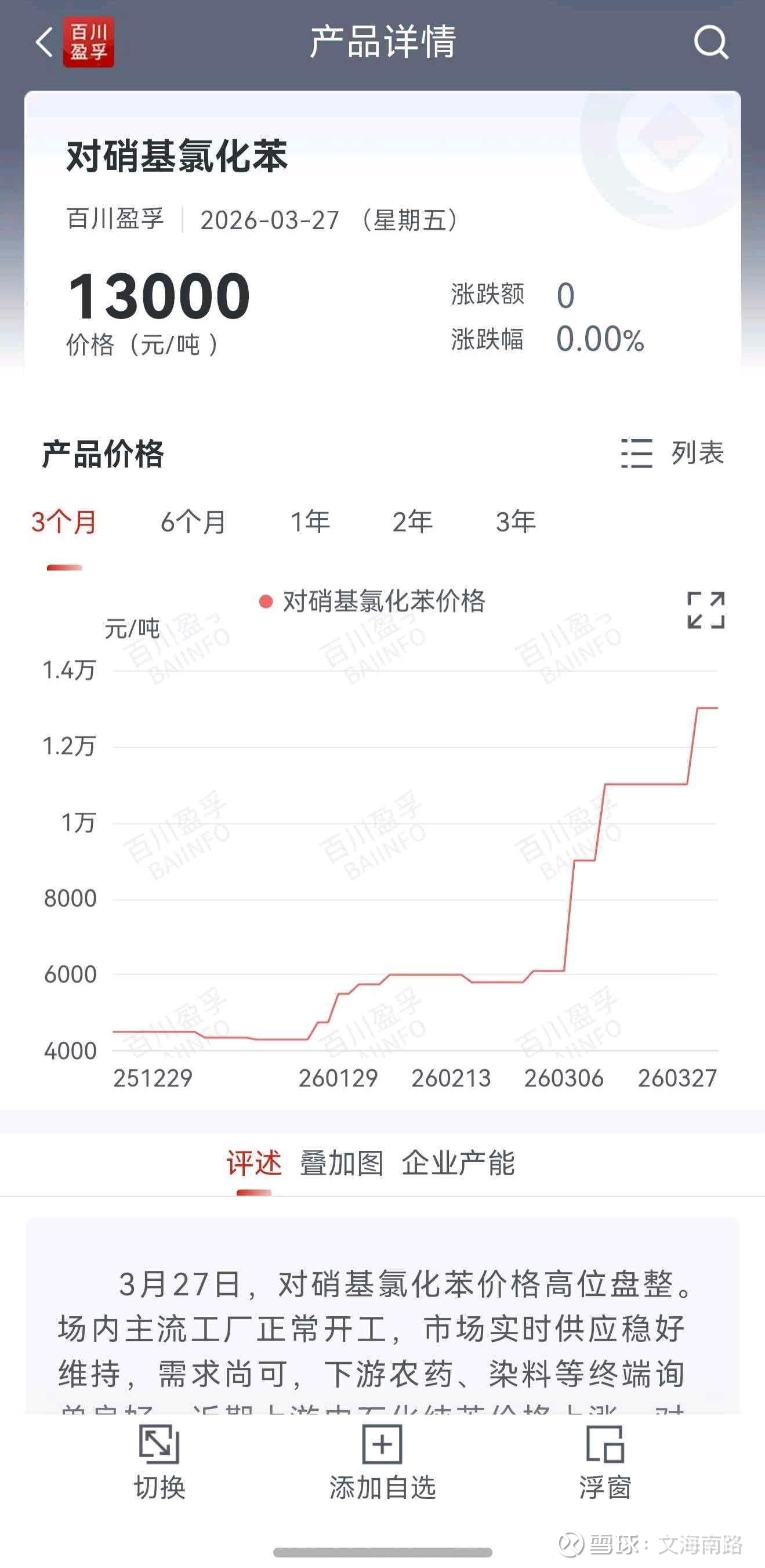 $广信股份(SH603599)$ 看点梳理:核心产品对硝基氯化苯近三月底部涨幅已经近三倍(20万吨,4000→13000),算上涨价弹性,后续有望贡献纯增量12-15亿净利润,目前130亿市值,PB仅1.31,公司行业周期底部8亿净利润兜底(对应对硝基氯化苯4000左右的价格),6.5pe(8+12亿),低估明显。