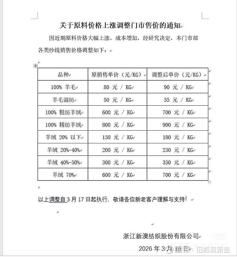 羊毛羊绒纱线全面涨价,量化最爱:涨价涨价涨价顺价顺价顺价。