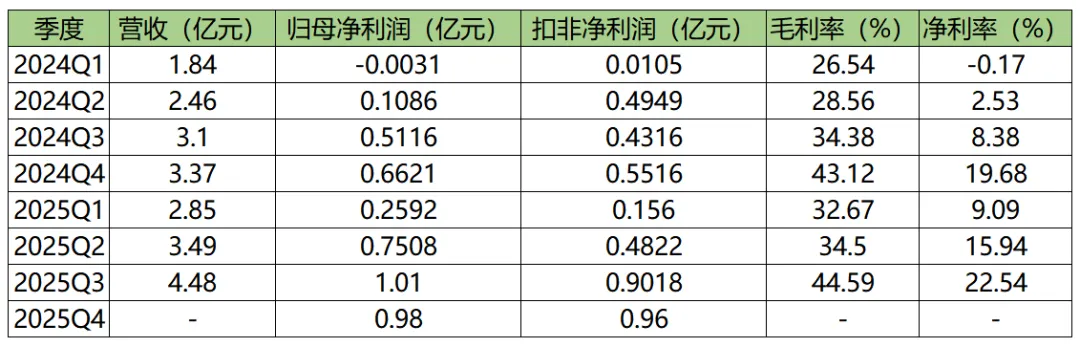 2025Q4的扣非净利润达到历史最高值9600万,环比仍有增长,但增速已经明显放缓,Q4毛利率已经达到44+%,已经达到历史最高值。