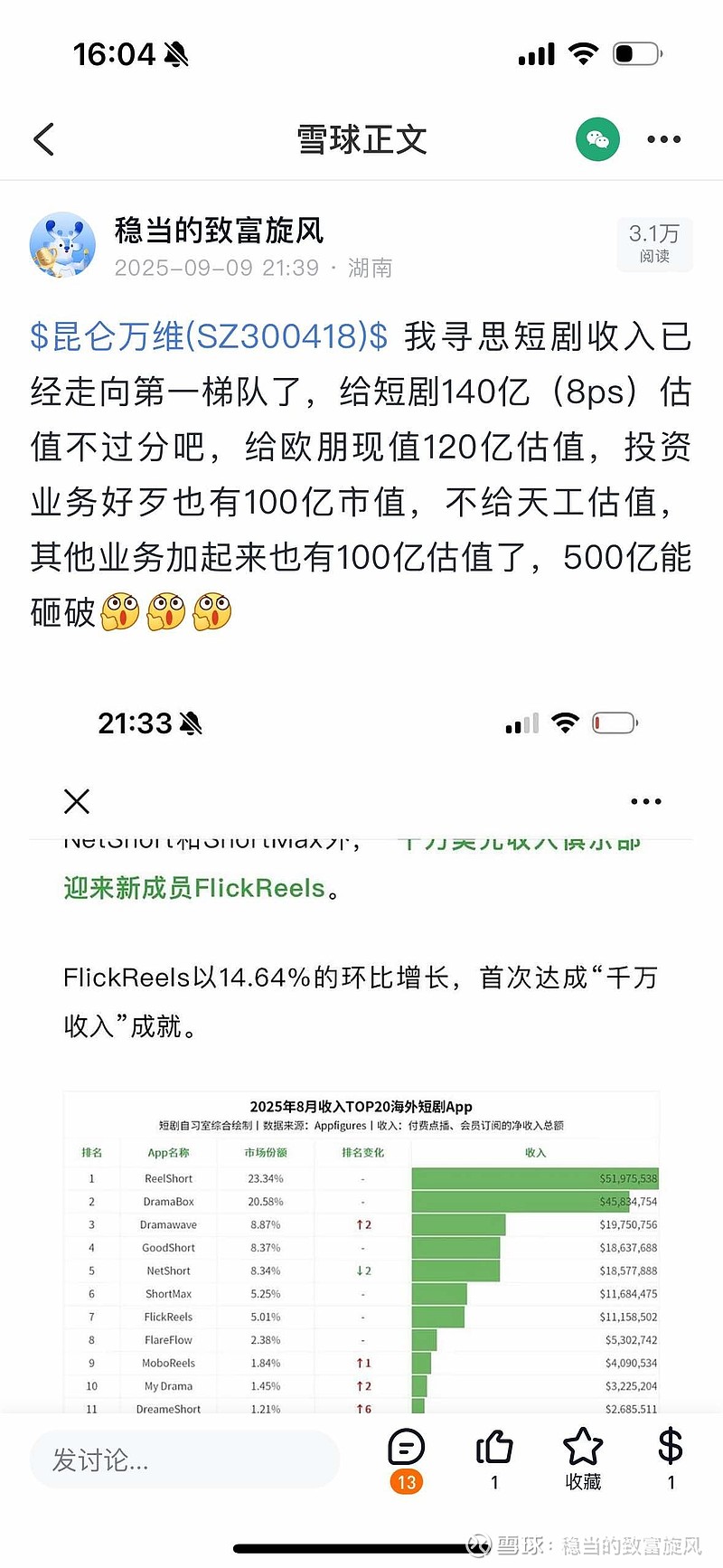 $昆仑万维(SZ300418)$