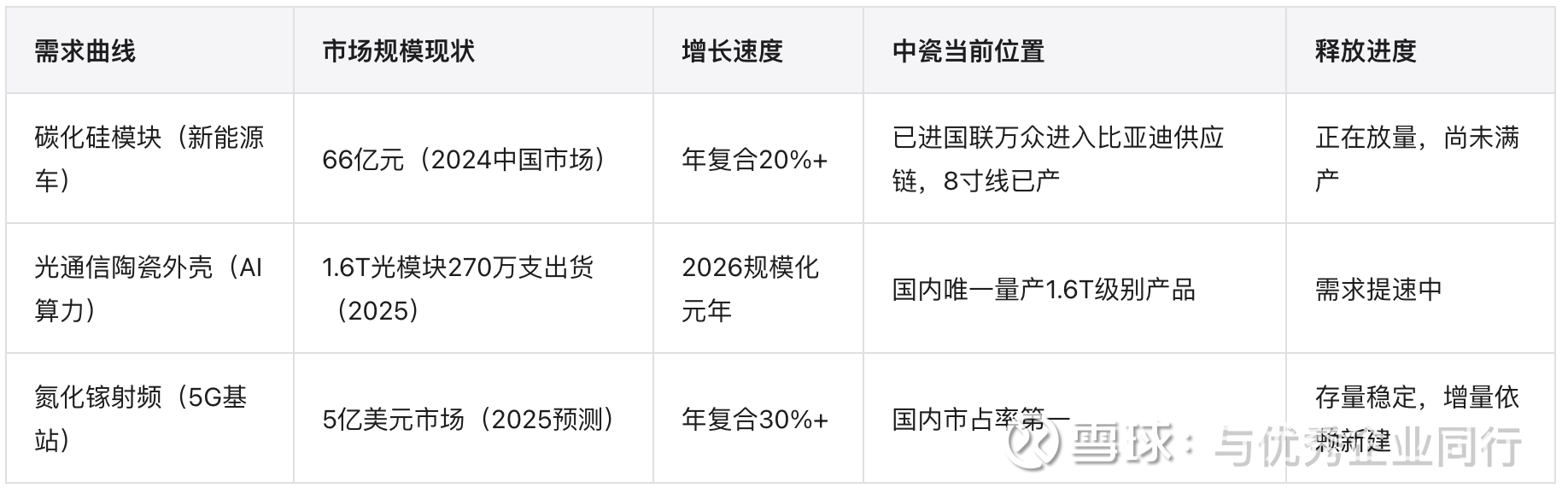 电子陶瓷这边的飞轮更稳:AI算力带动光模块需求,光模块需要更高精度的陶瓷外壳,中瓷作为国内唯一能做1.6T级别产品的厂商,这块需求的增长基本可以稳拿。