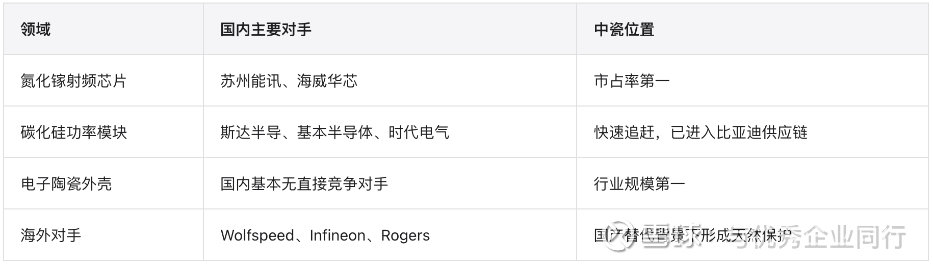 中瓷的竞争地位