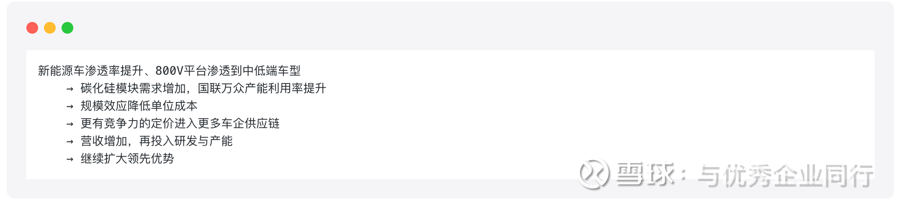 如果碳化硅业务持续兑现,公司的正向循环是这样的: