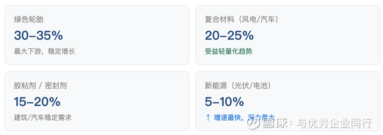 含硫硅烷是轮胎必用品,量大、稳定;新能源方向虽然份额还小,但增速是其他细分的3倍以上。光伏封装胶膜、动力电池电极粘结剂、新能源车密封材料——这些新需求还在持续拉升。换句话说,这是一个"老客户稳定消费+新客户快速增长"的双轮驱动格局。