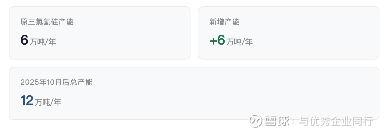 2025年10月10日,江瀚新材第二套年产6万吨三氯氢硅装置试车成功,三氯氢硅总产能从6万吨/年翻倍至12万吨/年。 这个时间点很有意思——公司在业绩最难看的时候,做了最大的资本投入。