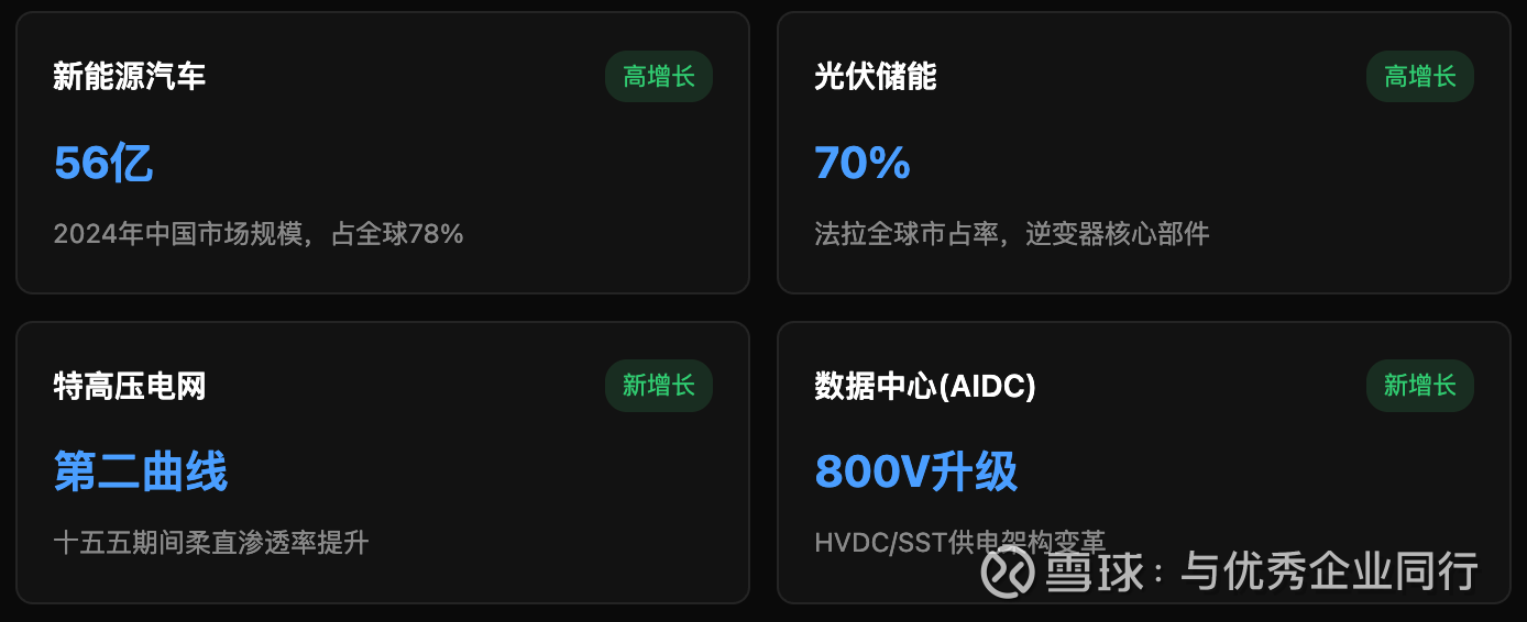 不算特别大,但增速很快。驱动力来自三个方向:新能源车爆发、光伏储能装机、工业自动化升级。