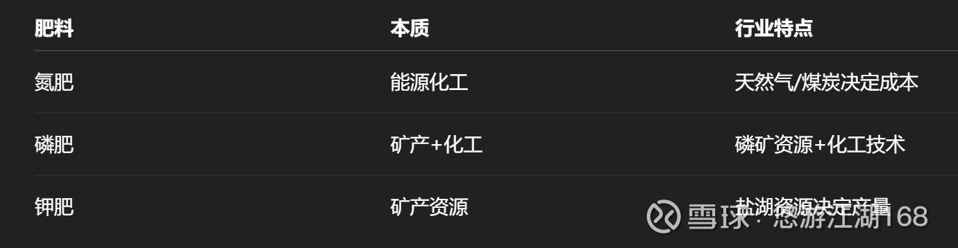 肥料行业本质氮肥能源化工磷肥资源+化工钾肥资源垄断