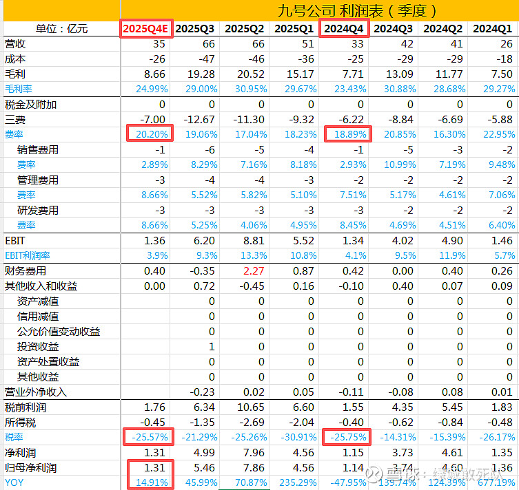 $九号公司-WD(SH689009)$ 九号2025Q4利润预测。