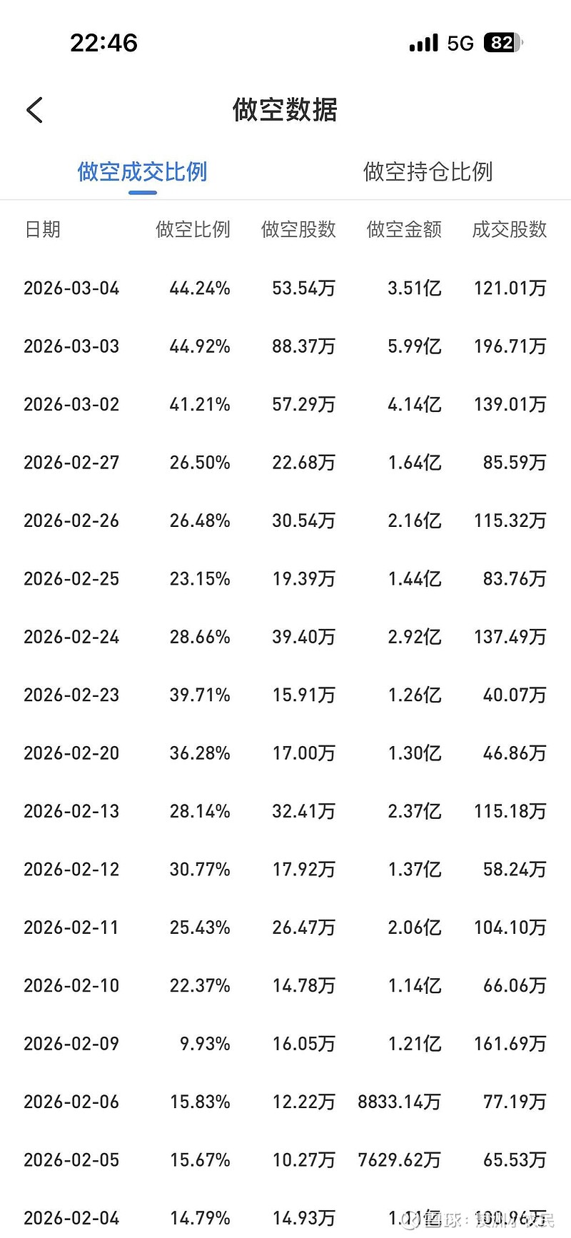 翻了一年的做空数据,最近两天的44%的做空比例,是历史最高数据