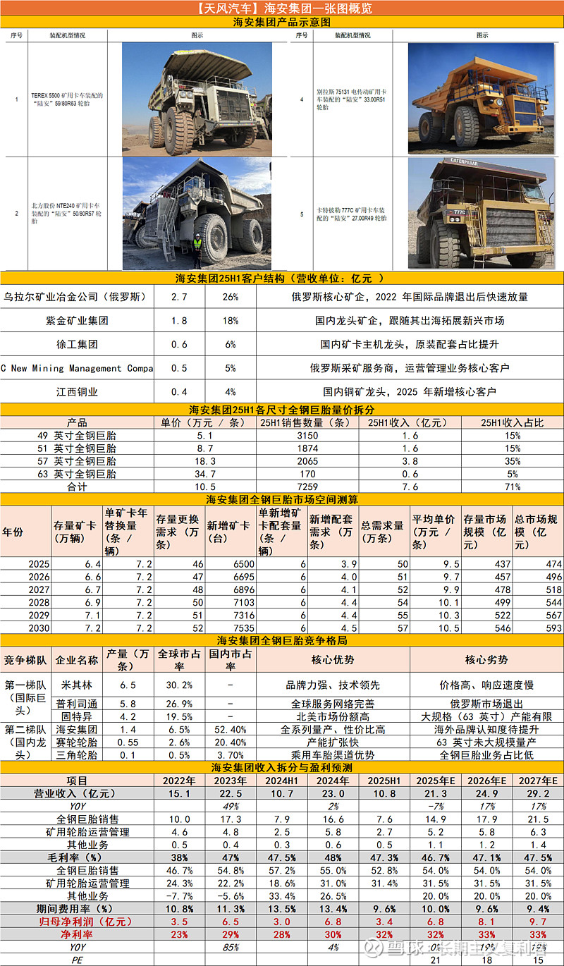 汇报3❗【天风汽车】海安集团:矿山后市场巨胎龙头,受益矿业高景气,估值有望迎来重塑-0118