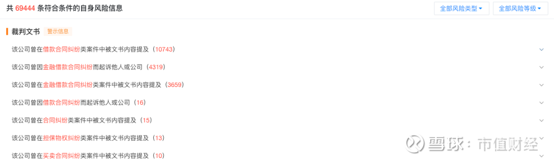 天眼风险信息显示有205636条;裁判文书22525条,涉案总金额2767.289082万元;涉诉关系53302条,开庭公告27626条,立案信息10510条。主要涉及金融借款合同纠纷。