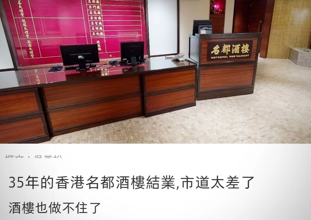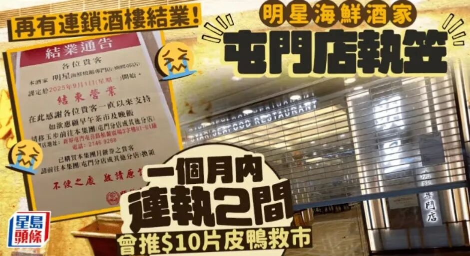 鸿星艺都海鲜酒家贴出告示,称门店将于2025年3月5日完全停业;香港的金钟名都酒楼同样宣布结业。